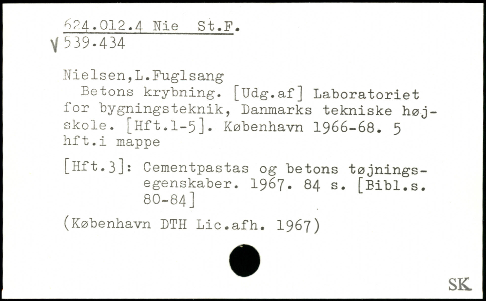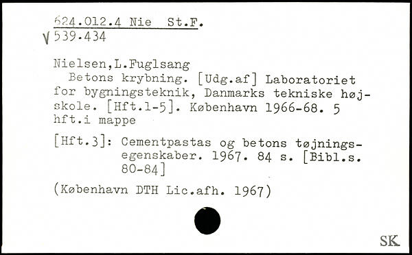 Nielsen,L.Fuglsang Betons krybning. [Udg.af] Laboratoriet for bygningsteknik, Danmarks tekniske højskole. [Hft.1-5].
