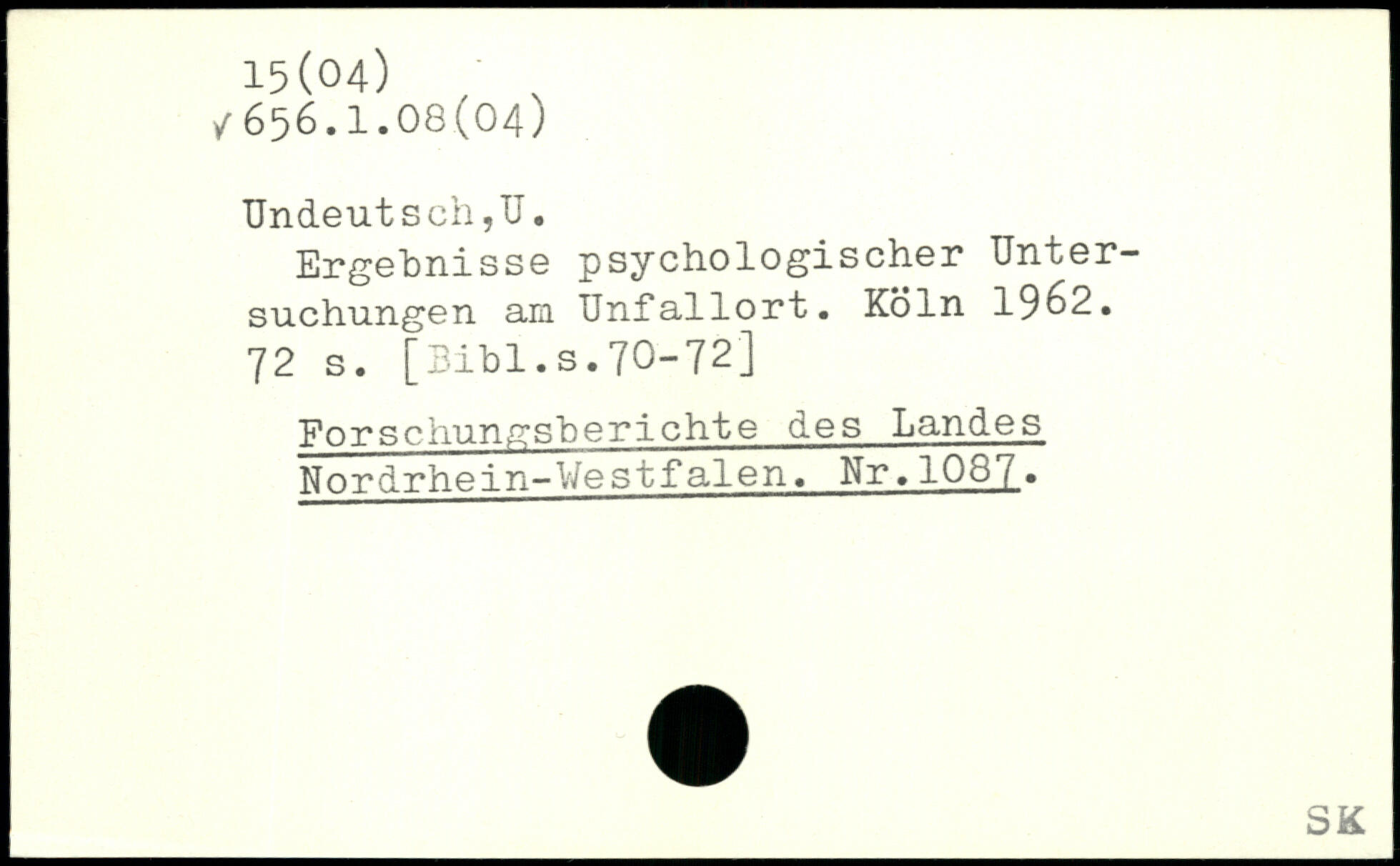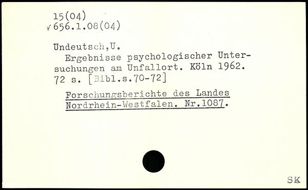 Ergebnisse psychologischer Untersuchungen am Unfallort. Köln 19^2.