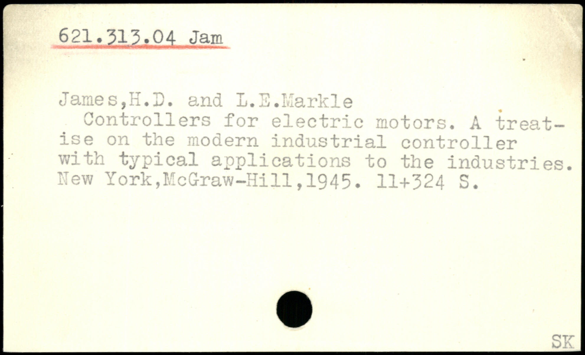 James,H.D. s.nd L.E.Markle Controllers for electric motors. A treatise on the modern industrial controller with typical applications to the industries.