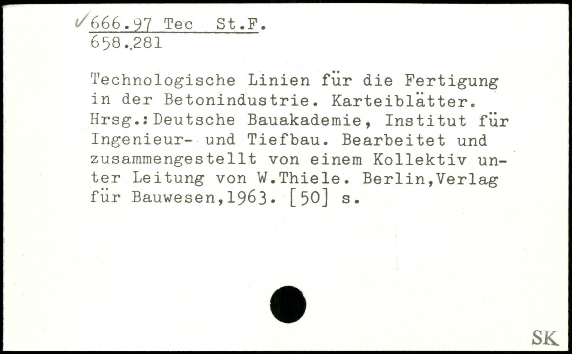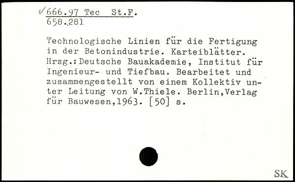 Technologische Linien für die Fertigung in der Betonindustrie. Karteiblätter. Hrsg.:Deutsche Bauakademie, Institut für Ingenieur- und Tiefbau. Bearbeitet und zusammengesteilt von einem Kollektiv unter Leitung von W.Thiele.