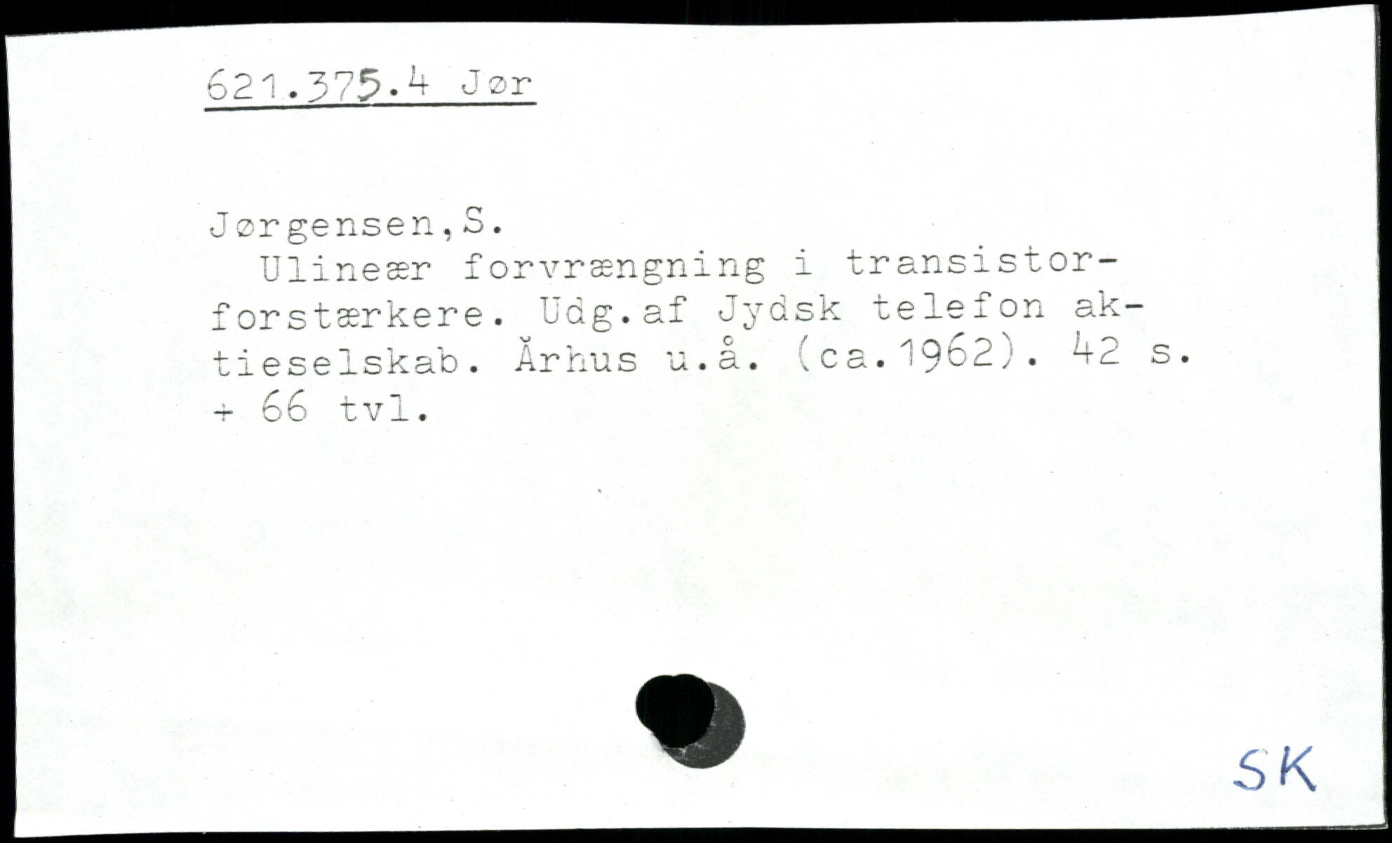 Ulineær forvrængning i transistorforstærkere. Udg.af Jydsk telefon aktieselskab. Århus u.å. (ca.1962)..