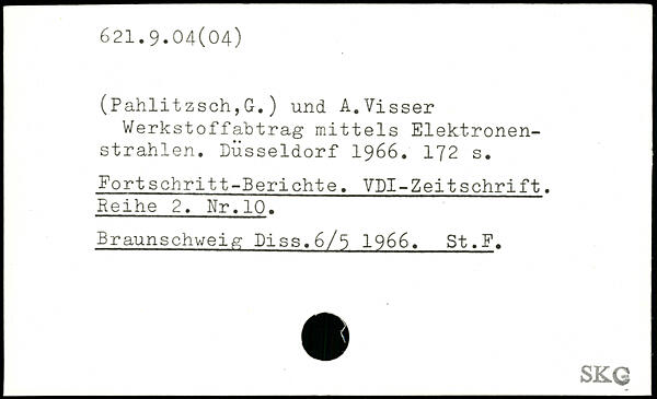 (Pahlitzsch,G.) und A.Visser Werkstoffabtrag mittels Elektronenstrahlen. Düsseldorf 1966.
