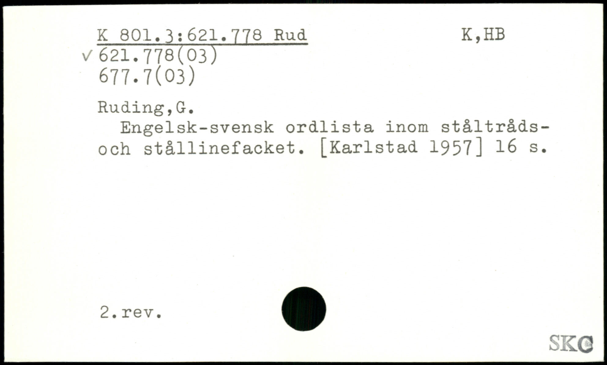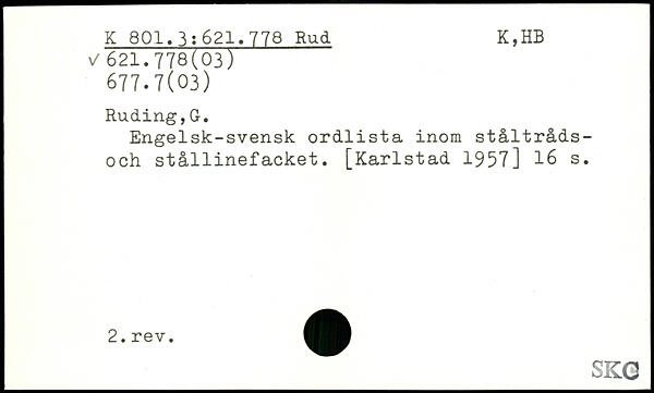 Engelsk-svensk ordlista inom ståltråds-och stållinefacket. [Karlstad 1957]
