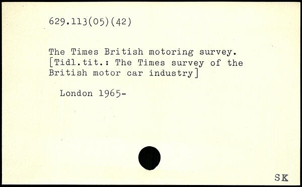 The Times British motoring survey. [Tidl.tit.: The Times survey of the British motor car industry]