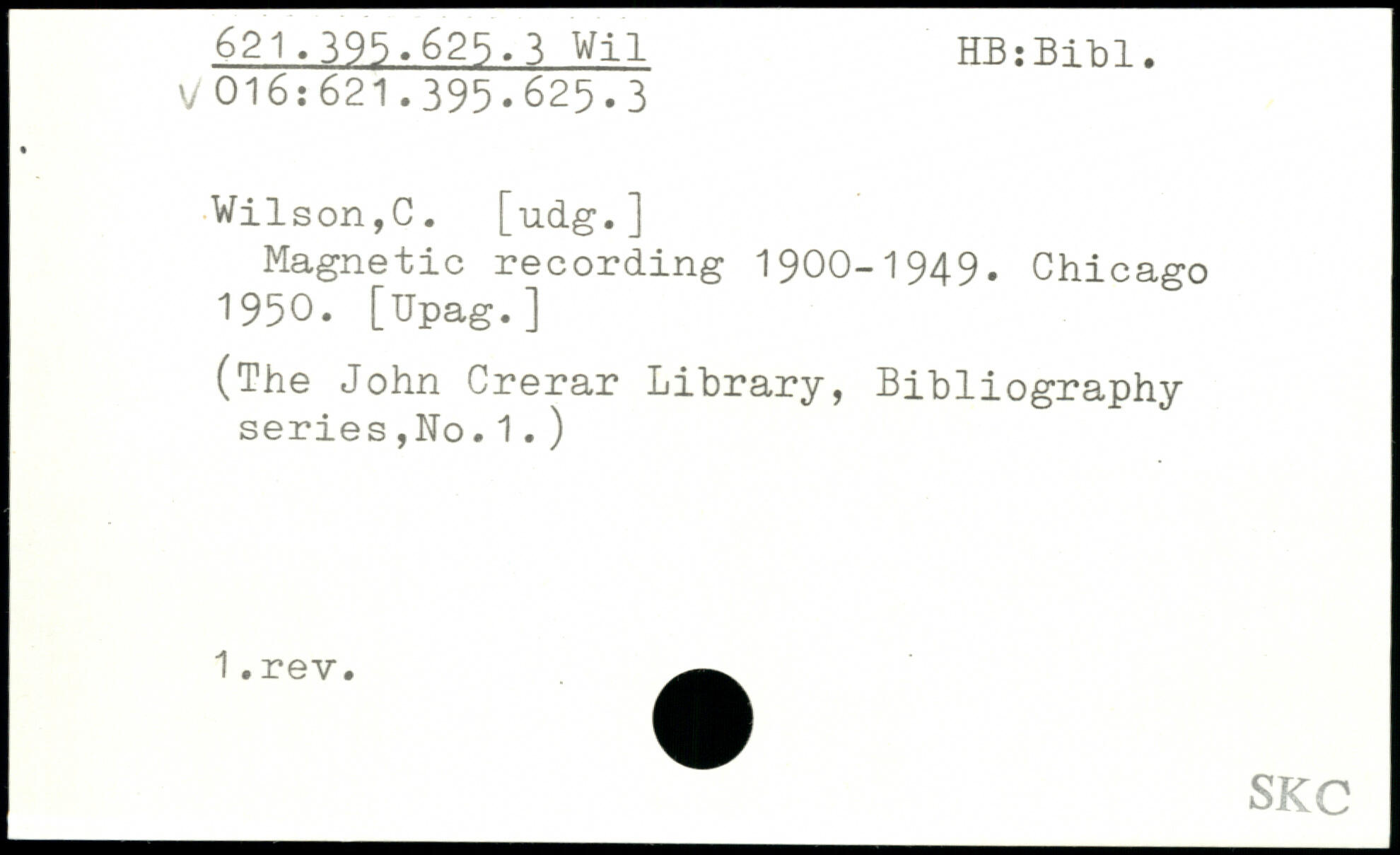 Wilson,C. [udg.] Magnetic recording 1900-1949.