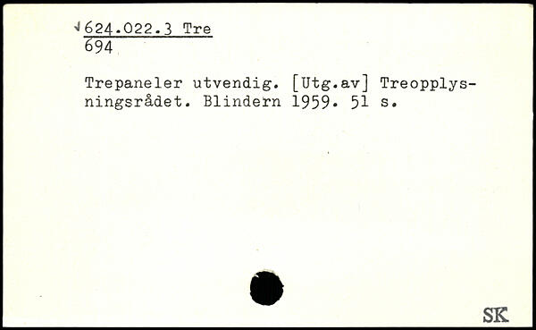 Trepaneler utvendig. [Utg.av] Treopplys-ningsrådet. Blindern 1959