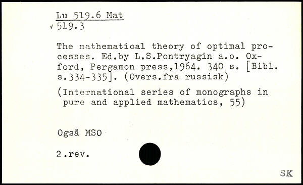 The mathematical theory of optimal processes. Ed.by L.S.Pontryagin a.o.