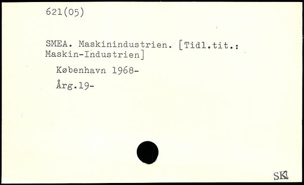 SMEA. Maskinindustrien. [Tidl.tit.j Maskin-Industrien]