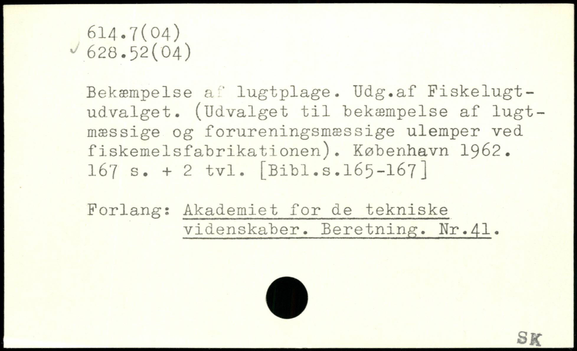 Bekæmpelse af lugtplage. Udg.af Fiskelugtudvalget. (Udvalget til Bekæmpelse af lugtmæssige og forureningsmæssige ulemper ved fiskemelsfabrikationen).