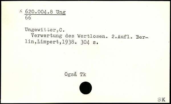 Ungewit Ler9C. Verwertung des Wertlosen. 2,Aufl. Berlin, Limpert, 19 38.
