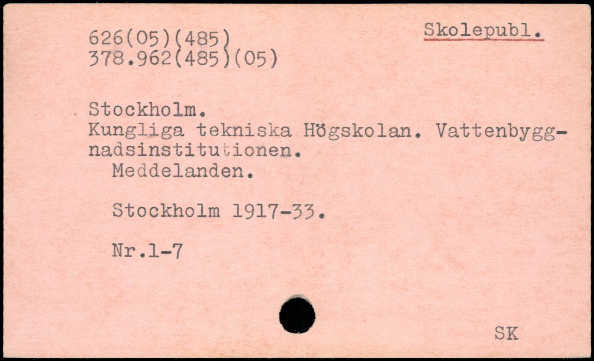 Kungliga tekniska Högskolan, Vattenbygg-nadsinstitutionen. Meddelanden.