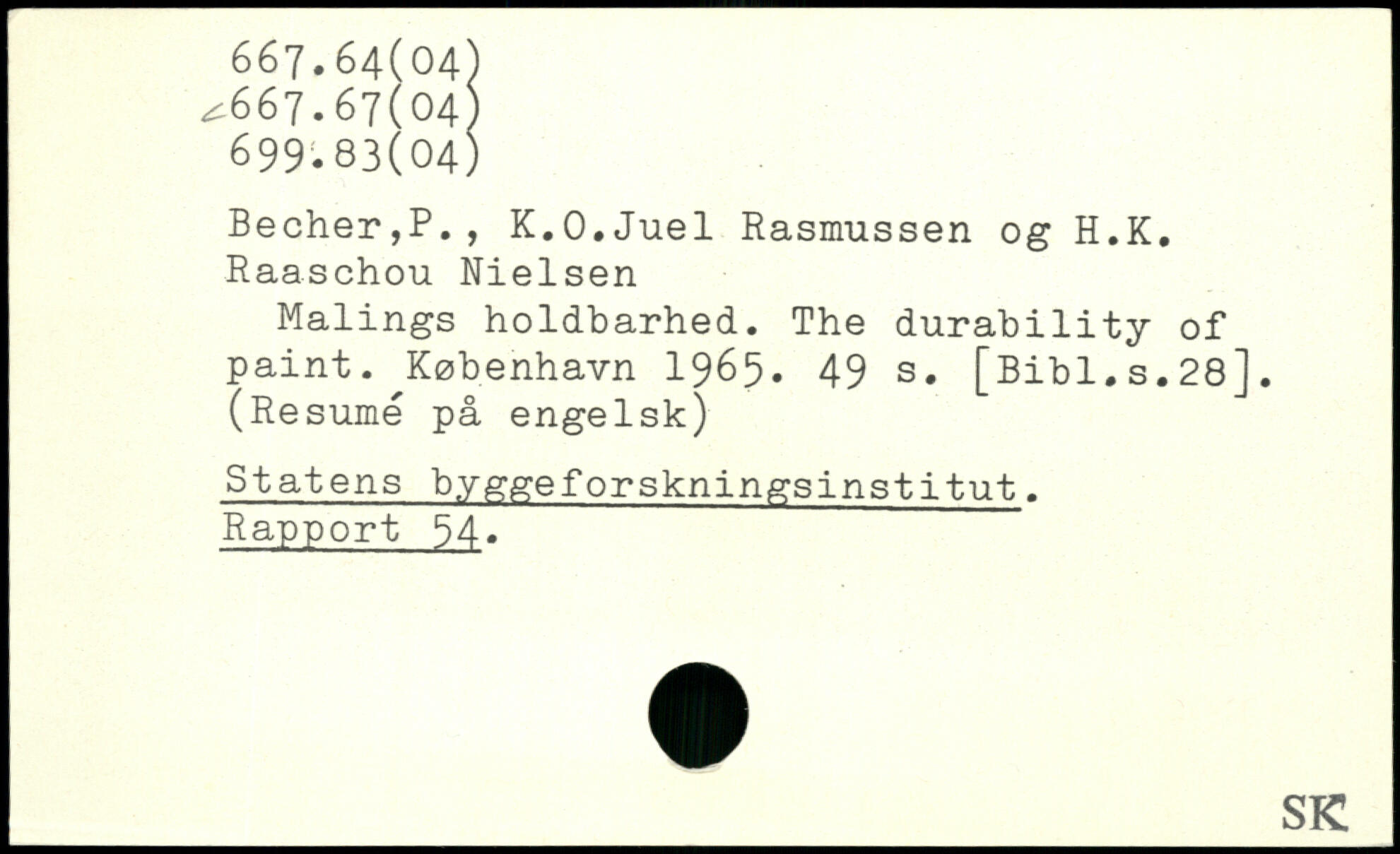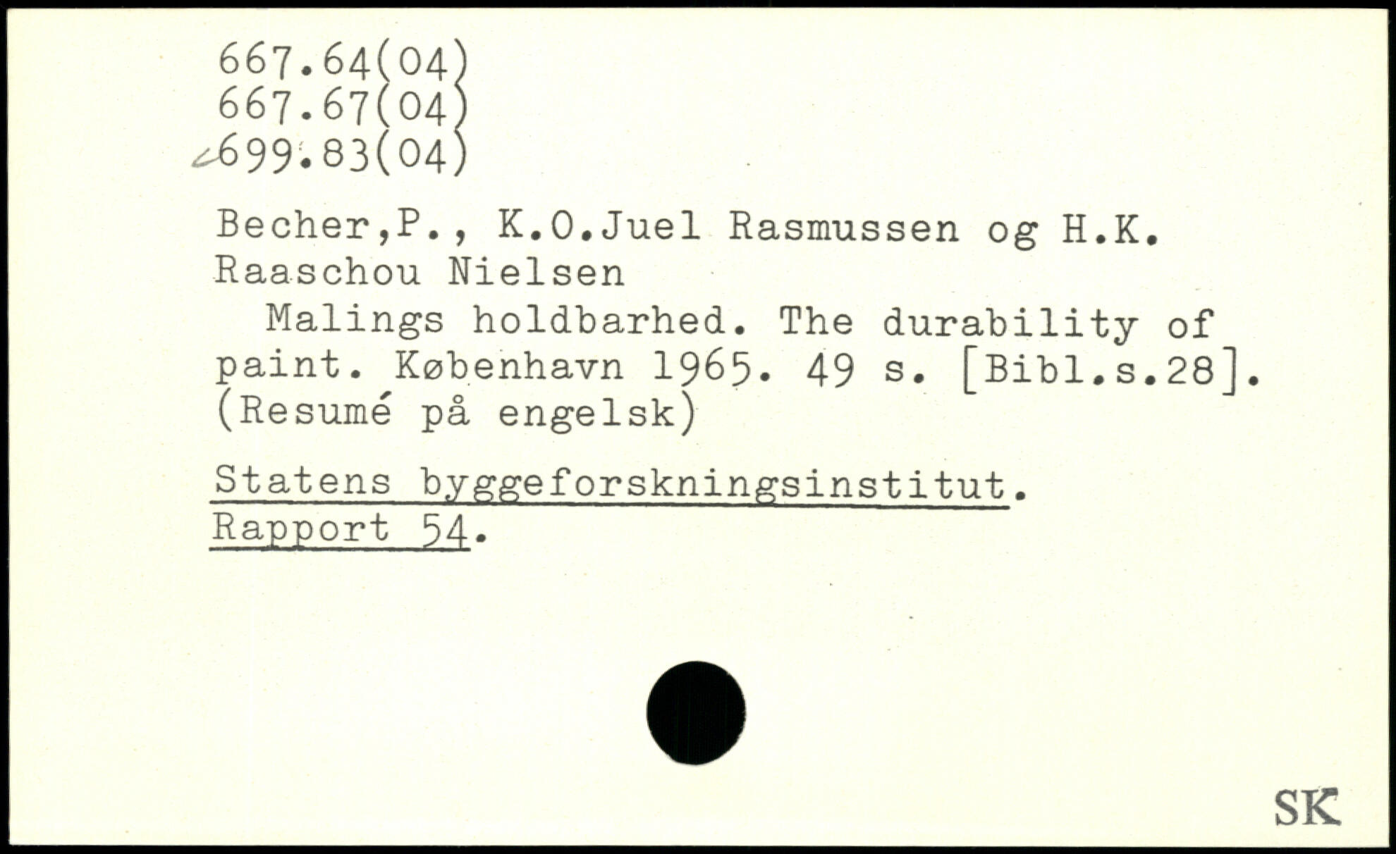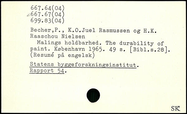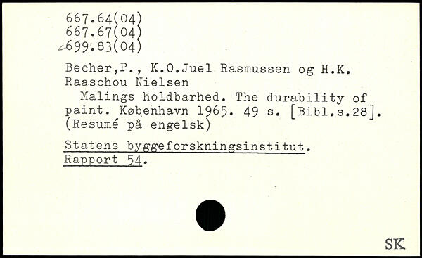 Becher,P. , K.O.Juel Rasmussen og H.K. Raaschou Nielsen Malings holdbarhed. The durability of paint.