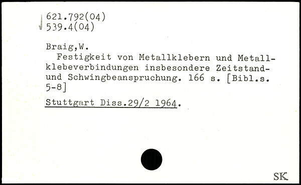 Festigkeit von Metallklebern und Metall-klebeverbindungen insbesondere Zeitstand-und Schwingbeanspruchung.