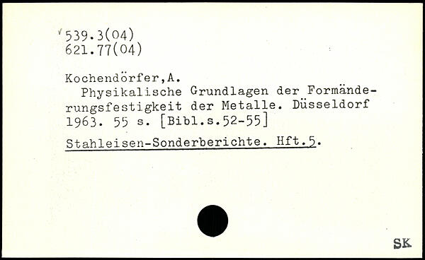 Physikalische Grundlagen der Formände-rungsfestigkeit der Metalle. Düsseldorf 1963.