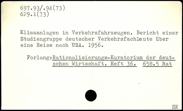 Klimaanlagen in Verkehrsfahrzeugen. Bericht einer Studiengruppe deutscher Verkehrsfachleute über eine Reise nach USA. 1956. ForlangtRationalisierungs-Kuratorium der deutschen Wirtschaft, Heft 36. 658.5 Rat