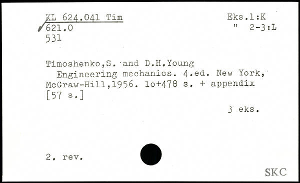 Timoshenko,S,.and D.H.Young Engineering mechanics. New York,' McGraw-Hill,1956. lo