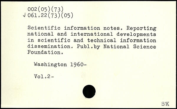 Scientific information notes. Reporting national and international developments in scientific and technical information dissemination