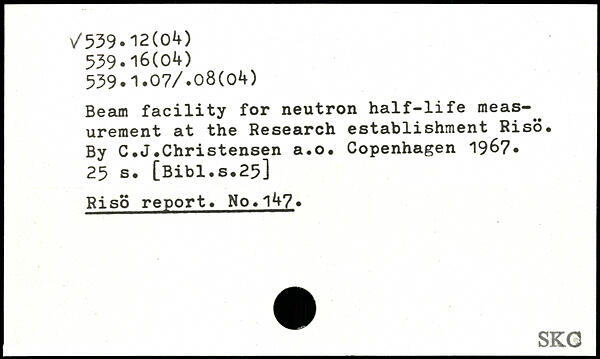 Beam facility for neutron half-life meas-^ urement at the Research establishment Riso. By C.J.Christensen a.o.