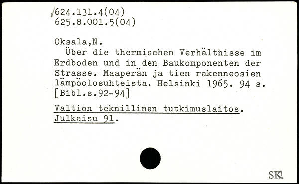 Über die thermischen Verhalthisse im Erdboden und in den Baukomponenten der Strasse. Maaperan ja tien rakenneosien l'ampöolosuhteista.