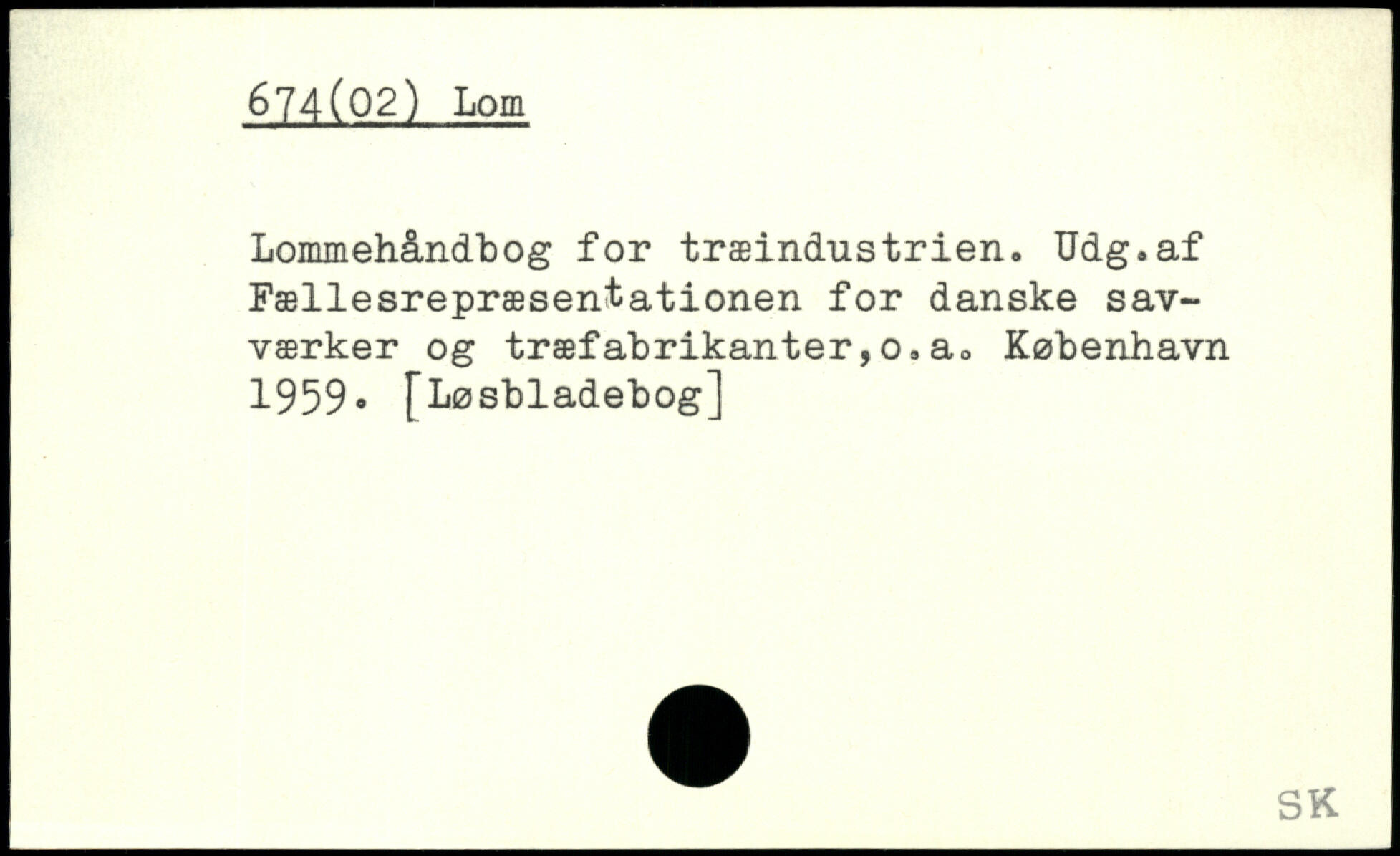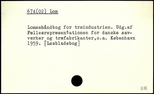 Lommehåndbog for træindustrien. Udg.af Fællesrepræsentationen for danske savværker og træfabrikanter,o.a.