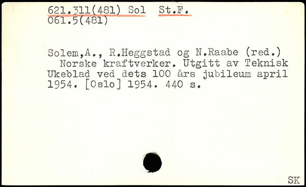 Norske kraftverker. ïïtgitt av Teknisk Ukeblad ved dets 100 års jubileum april 1954. [Oslo] 1954.