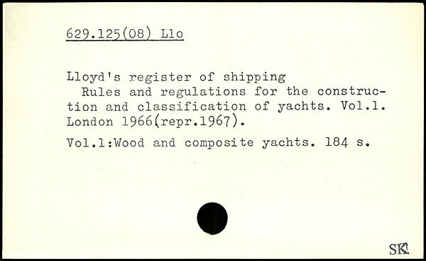 Lloyd's register of shipping Rules and regulations for the construction and classification of yachts.
