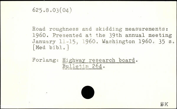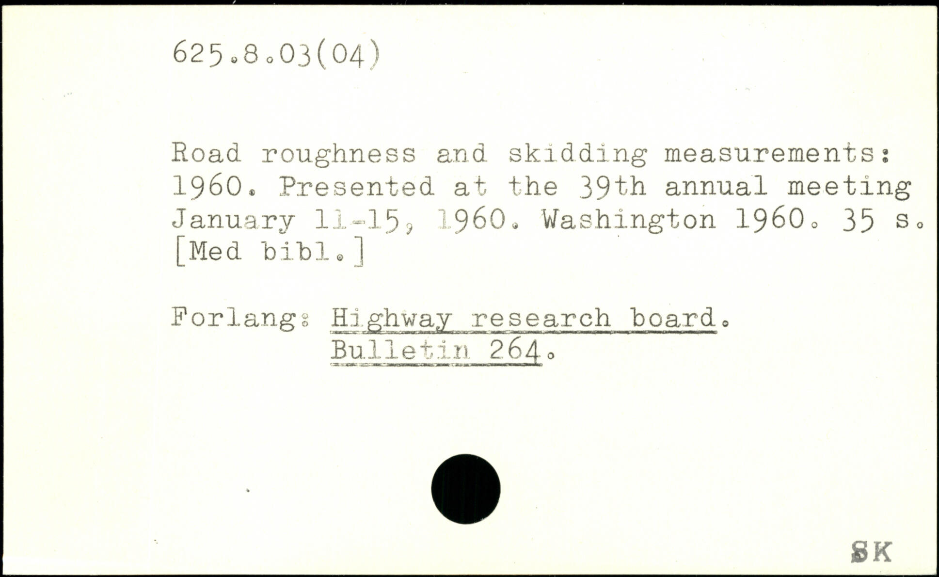 Road roughness and skidding measurements: 1960. Presented at the 39^h annual meeting January 11-15? 1960