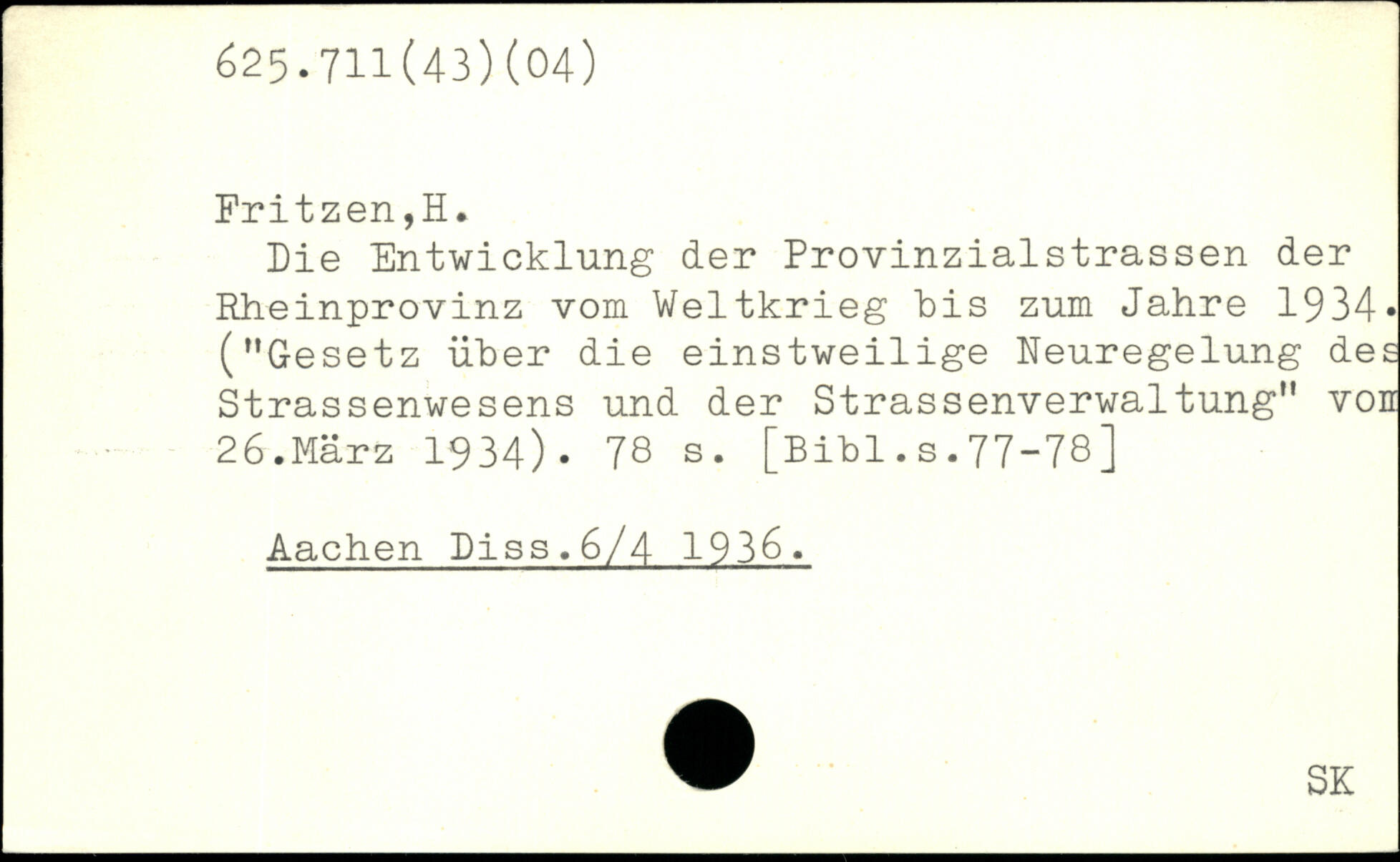 Die Entwicklung der Provinzialstrassen der Rheinprovinz vom Weltkrieg "bis zum Jahre 1934, ("Gesetz über die einstweilige Neuregelung des Strassenwesens und der Strassenverwaltung" von 26.März 1934).