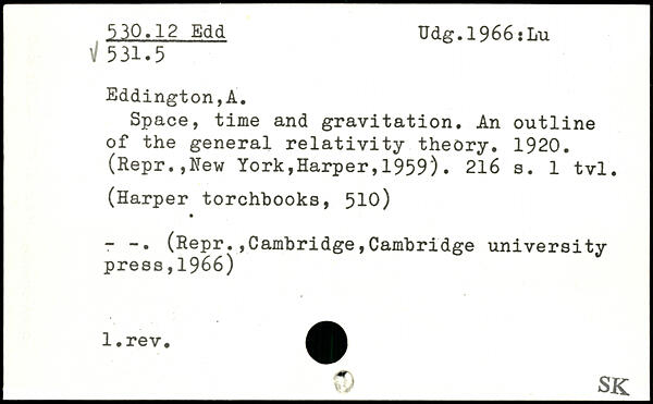 Space, time and gravitation. An outline of the general relativity theory. 1920. (