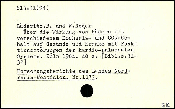 Über die Wirkung von Bädern mit verschiedenem Kochsalz- und C02-Ge-halt auf Gesunde und Kranke mit Funktionsstörungen des kardio-pulmonalen Systems.