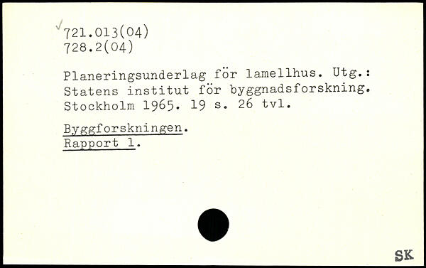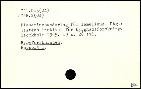 Planeringsunderlag for lamellhus. Utg.: Statens institut för byggnadsforskning.