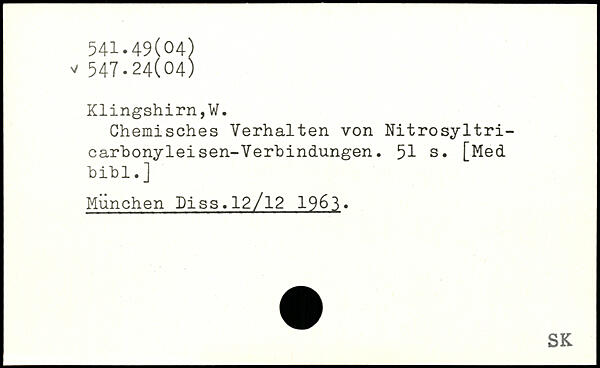 Chemisches Verhalten von Nitrosyltri-carbonyleisen-Verbindungen.