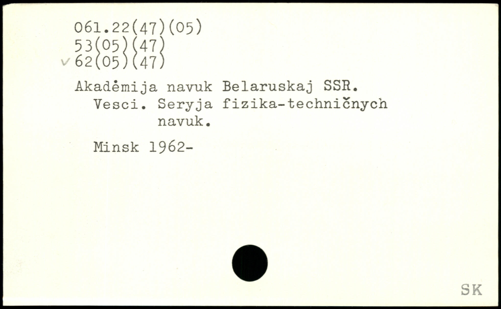 Akadémija navuk Belaruskaj SSR. Vesci. Seryja fizika-technicnych navuk. Minsk 1962-