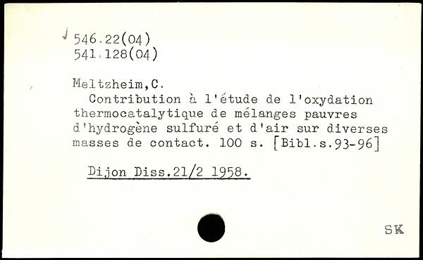 Contribution à l'étude de l'oxydation thermocatalytique de mélanges pauvres d'hydrogène sulfuré et d'air sur diverses masses de contact.
