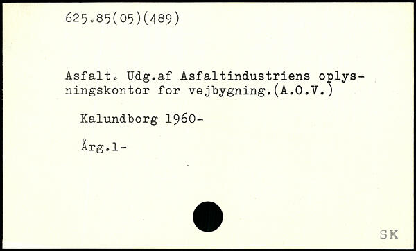 Asfalt. Udg.af Asfaltindustriens oplysningskontor for vejbygning.(A.O.V.) Kalundborg 1960- Årg.1-