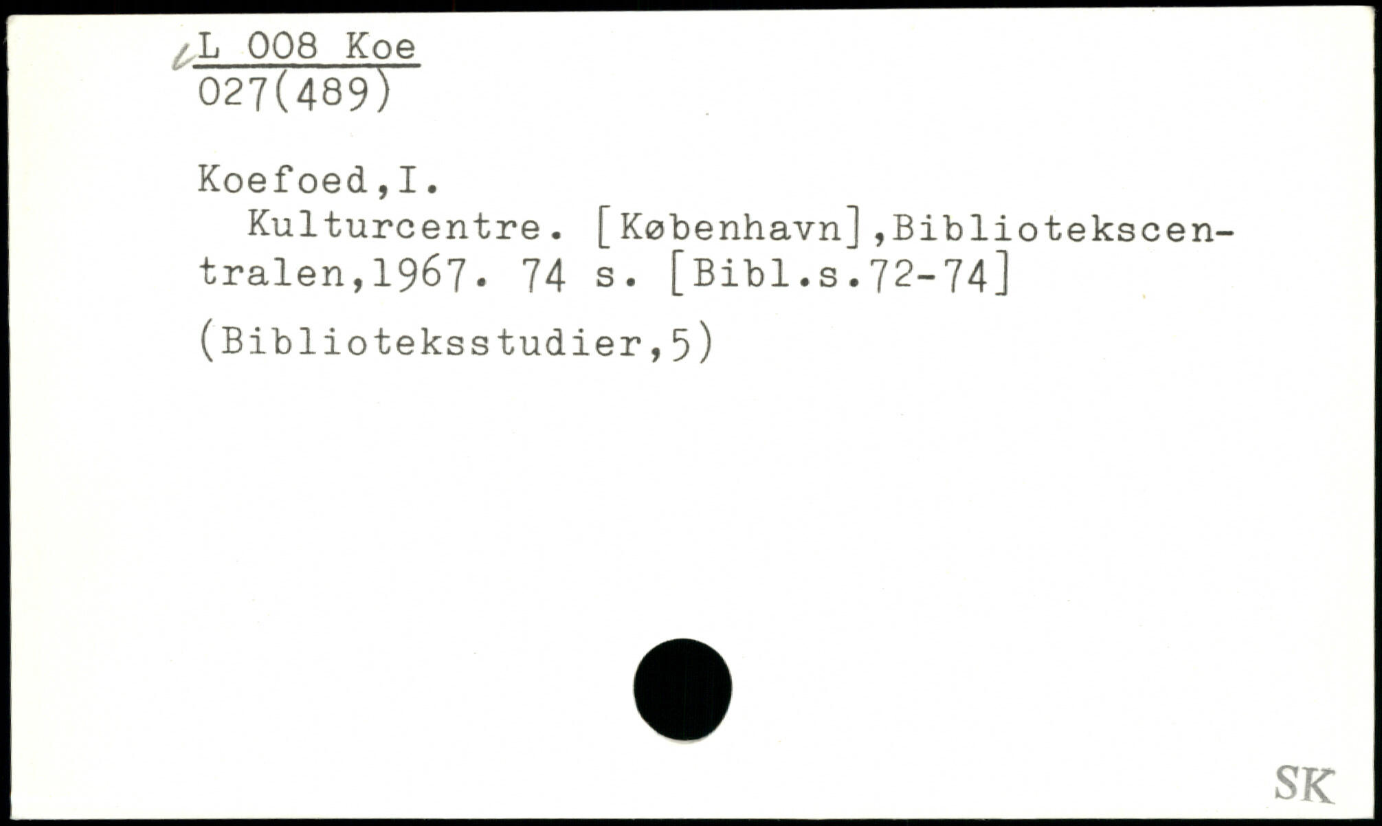 Kulturcentre. [København]bibliotekscentralen,1967.