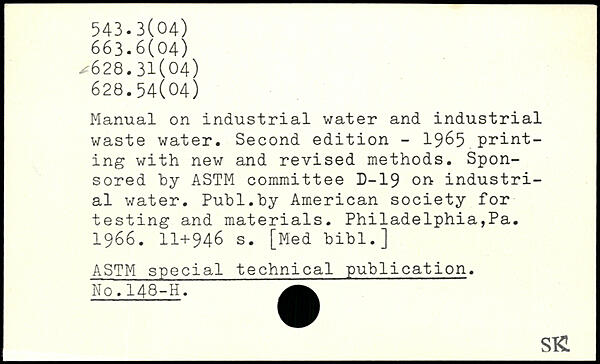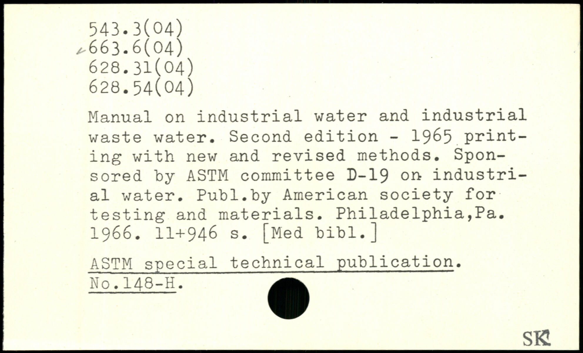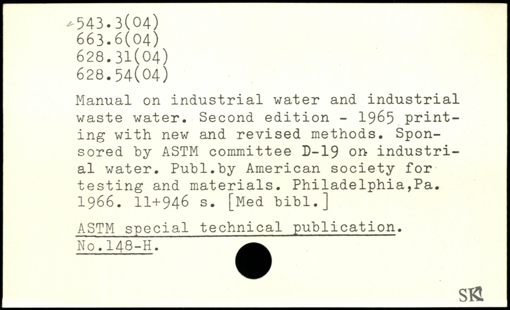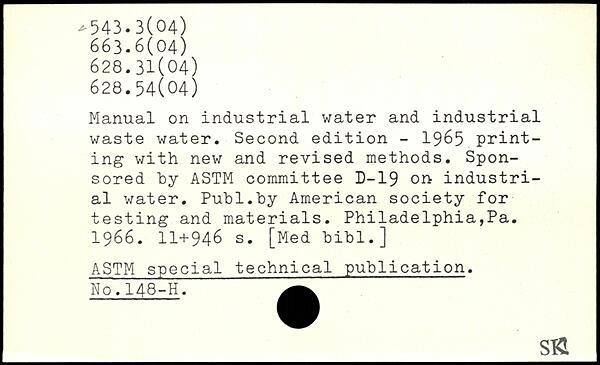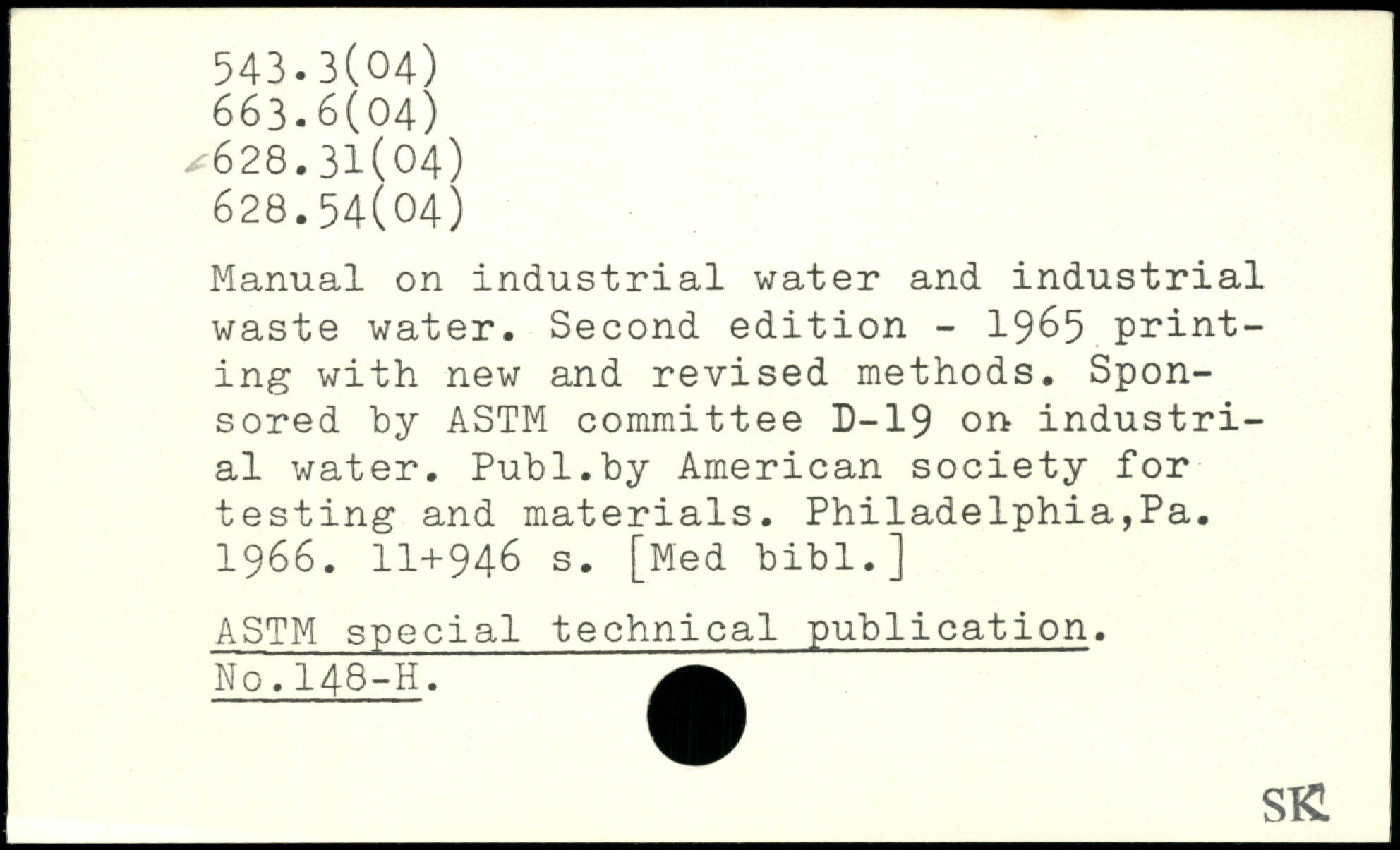 Manual on industrial water and industrial waste water. Second edition - 1965 printing with new and revised methods. Sponsored by ASTM committee D-19 on industrial water.