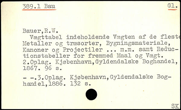 Vægttabel indeholdende Vægten af de flest, Metaller og træsorter, Bygningsmateriale, Kanoner og Projectiler ... m.m. samt Reduc-tionstabeller for fremmed Maal og Vægt. 2.Oplag.