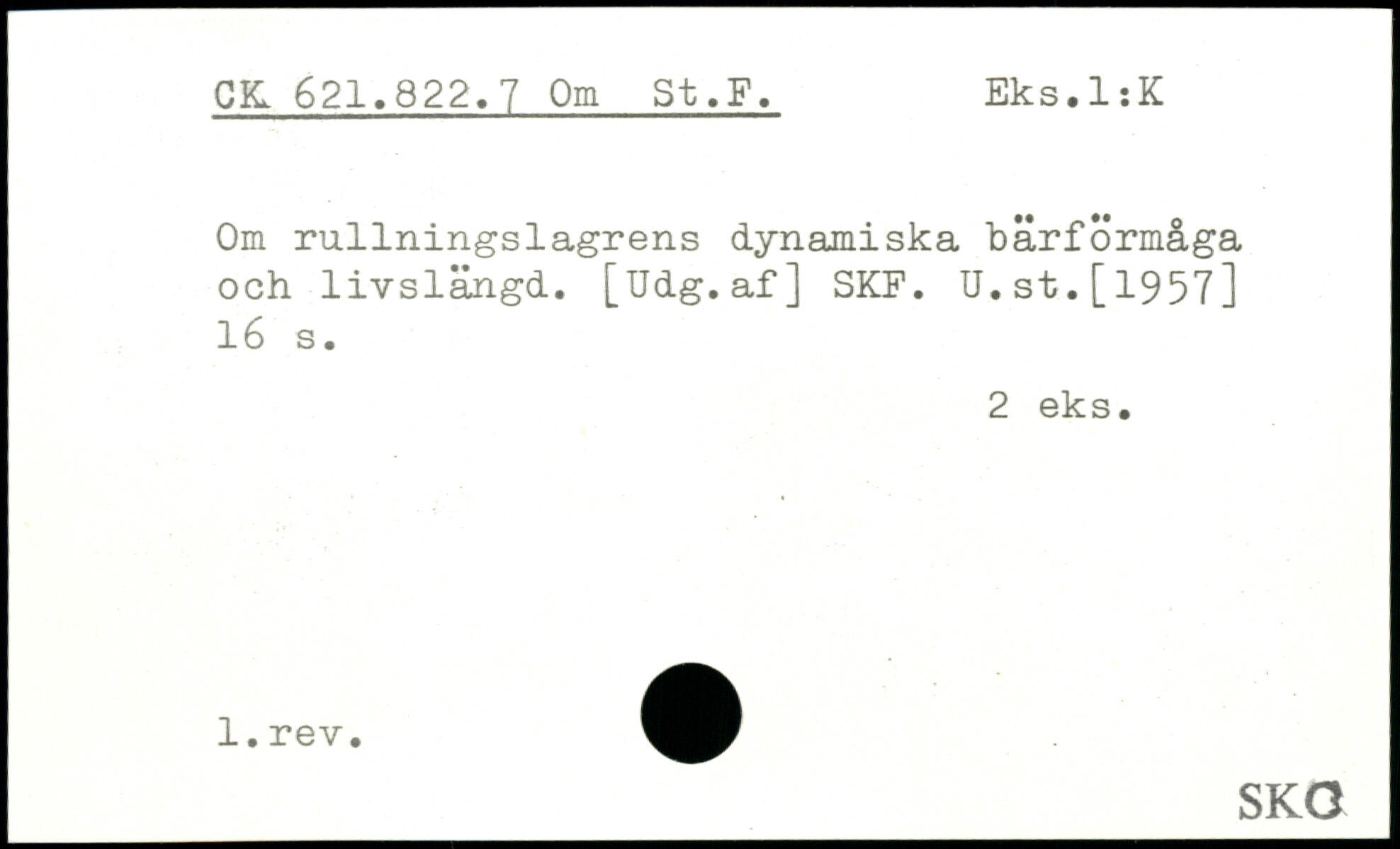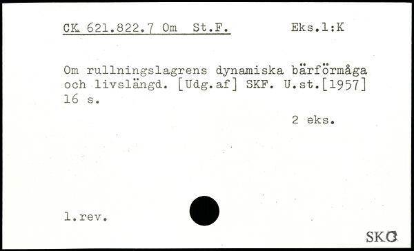 Om rullningslagrens dynamiska bärförmåga och livslängd. [Udg.af] SKF. U.st.[1957]
