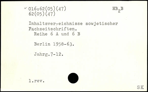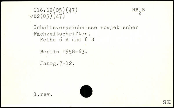 Inhaltsverzeichnisse sowjetischer Fachzeitschriften. Reihe 6 A und 6 B