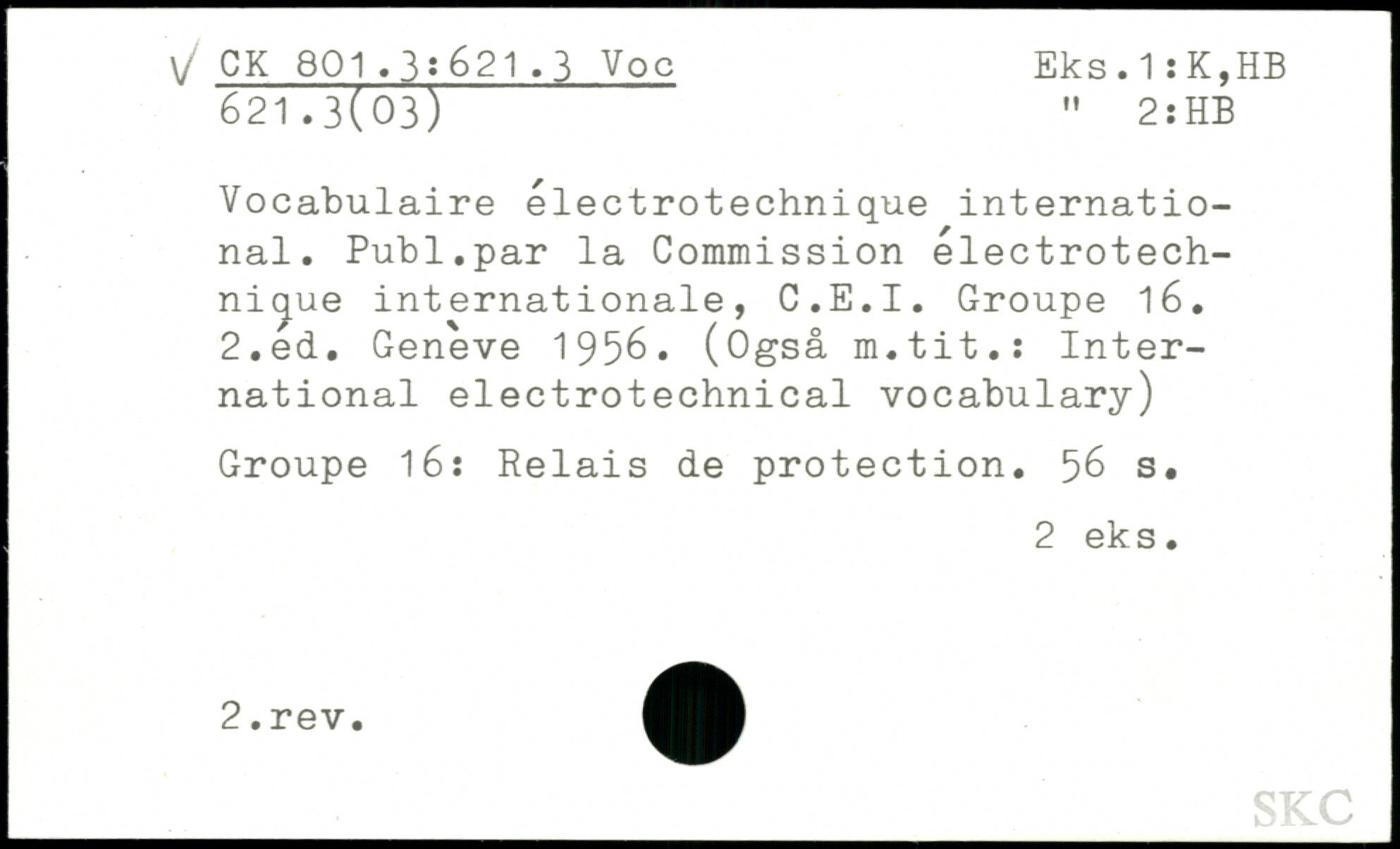 Vocabulaire électrotechnique international. Publ.par la Commission electrotech-nicjue internationale, C.E.I. Groupe 16.