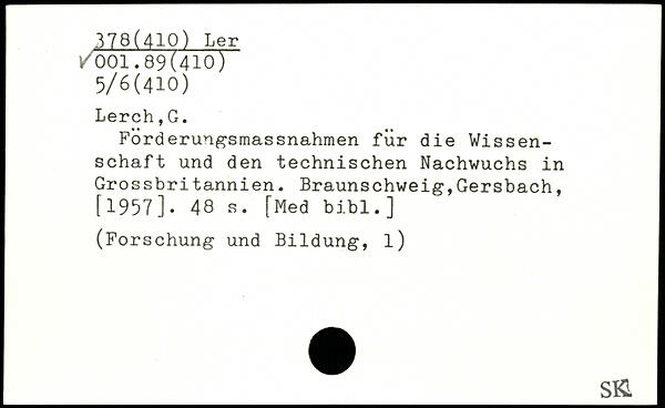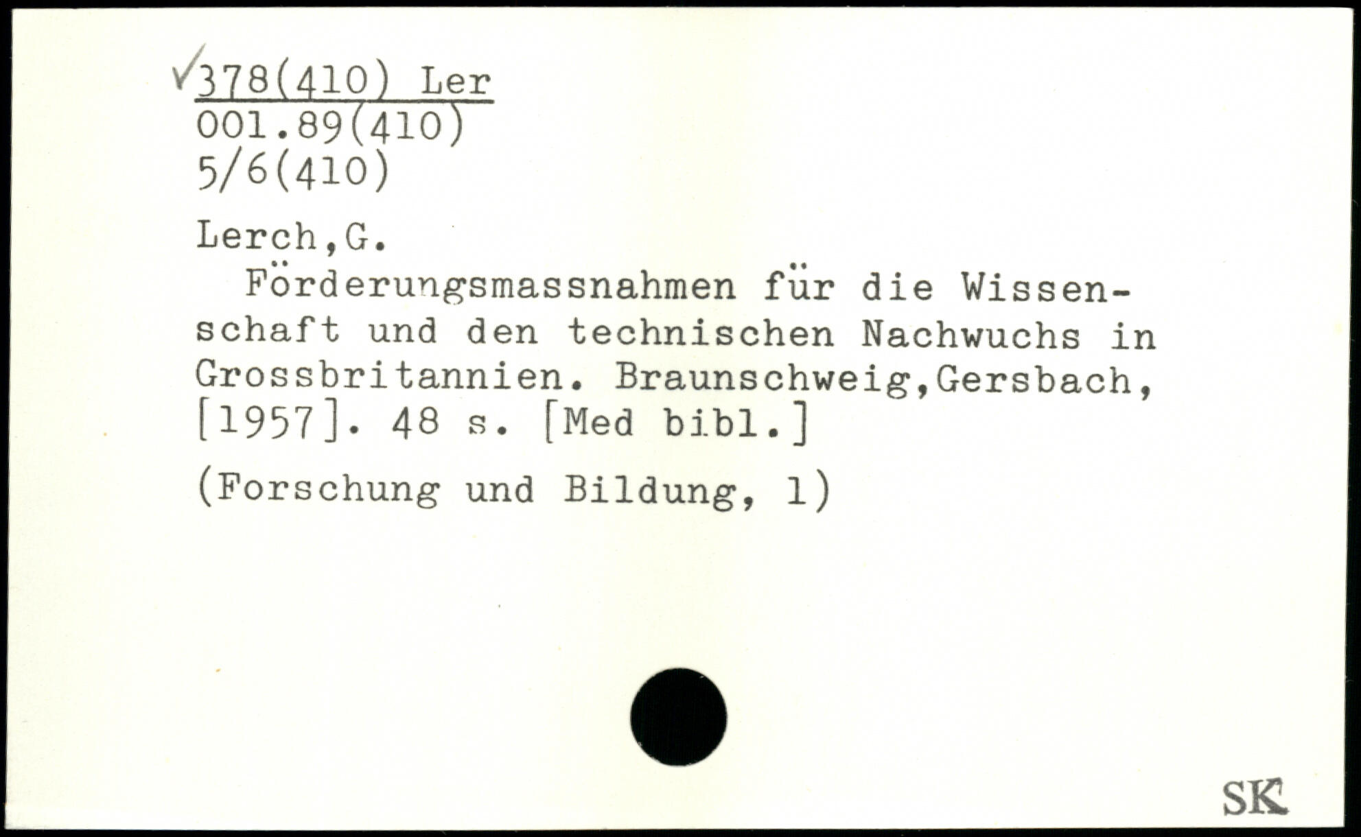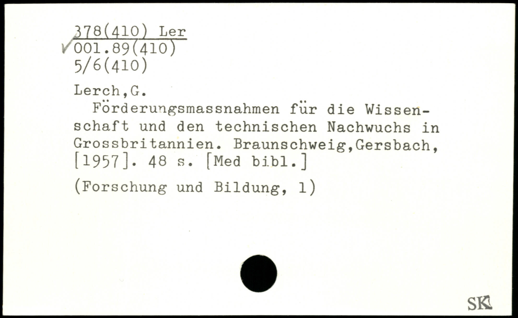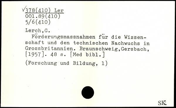 Forderungsmassnahmen für die Wissenschaft und den technischen Nachwuchs in Grossbritannien. Braunschweig,Gersbach,