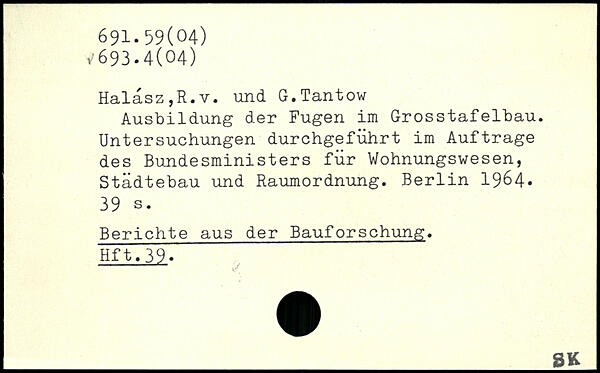 Ausbildung der Fugen im Grosstafelbau. Untersuchungen durchgeführt im Aufträge des Bundesministers für Wohnungswesen, Städtebau und Raumordnung.