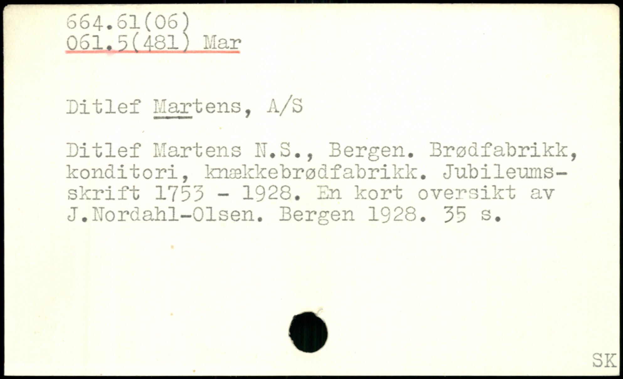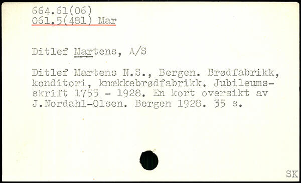 Ditlef Martens, A/S Ditlef Martens N.S., Bergen, Brodfabrikk, konditori, kn$kkebr0dfabrikk. Jubileumsskrift 1753 - 1928. En kort översikt av J.Nordahi-Olsen.