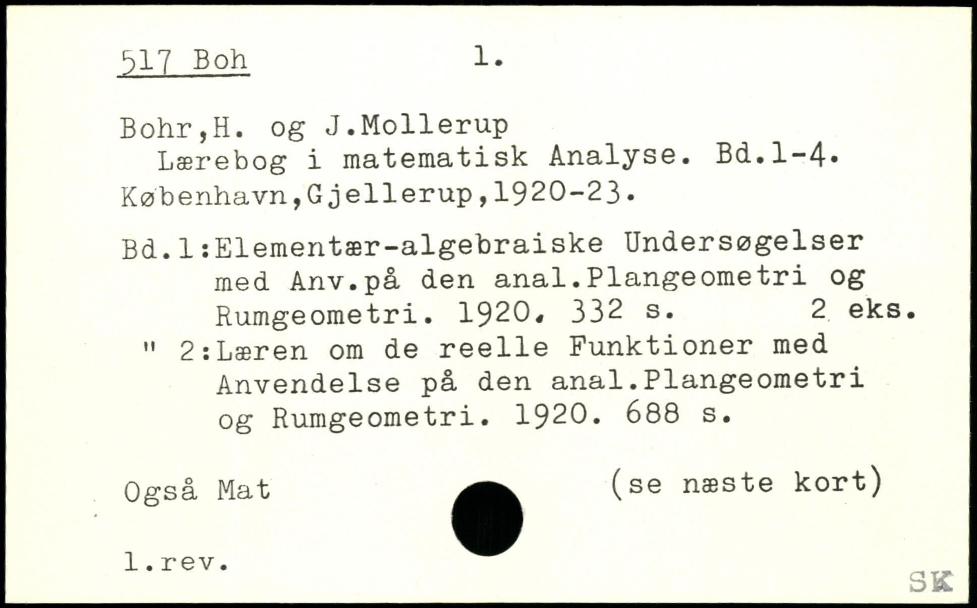 Lærebog i matematisk Analyse.
