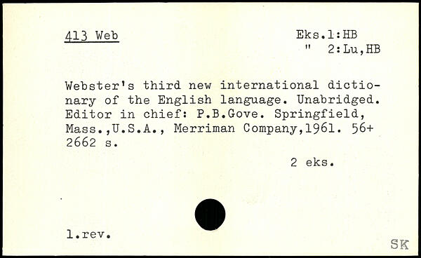 Webster!s third new international dictionary of the English language. Unabridged. Editor in chief: P.B.Gove.