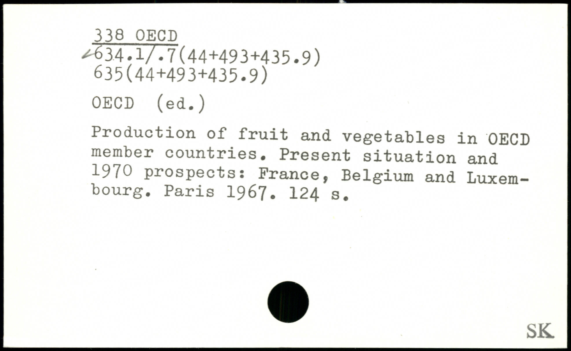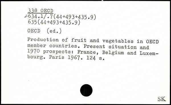 Production of fruit and vegetables in OECD member countries. Present situation and 1970 prospects: Prance, Belgium and Luxembourg.