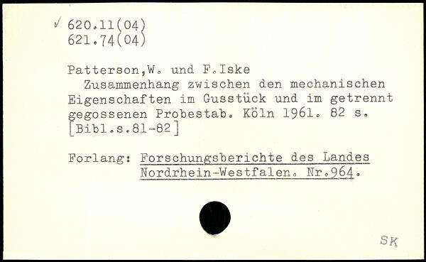 Zusammenhang zwischen den mechanischen Eigenschaften im Gusstück und im getrennt gegossenen Probestab.