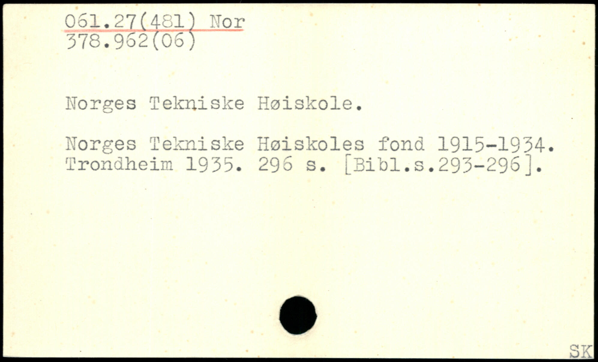 Norges Tekniske Høiskole. Norges Tekniske Høiskoles fond 1915-1934.