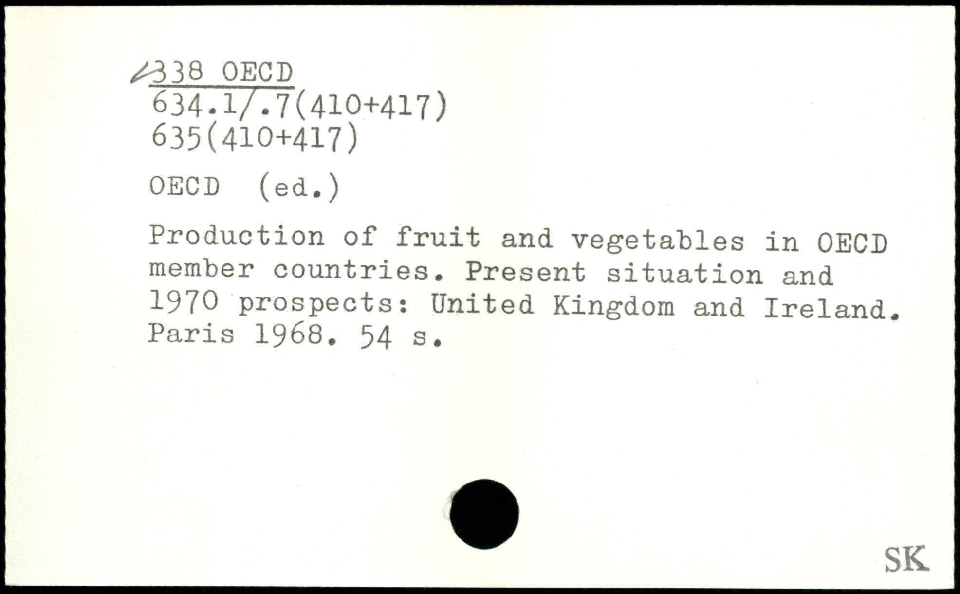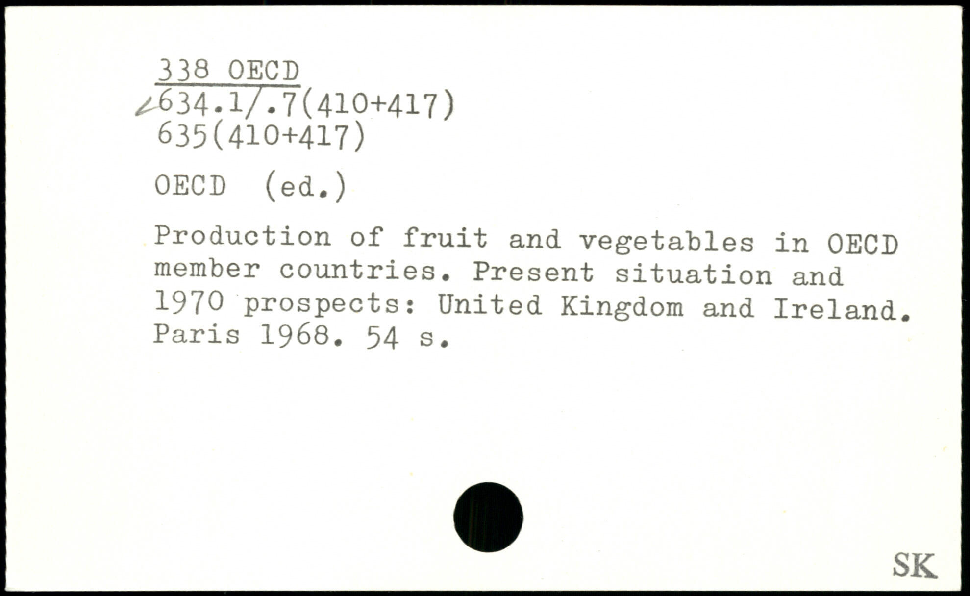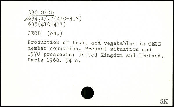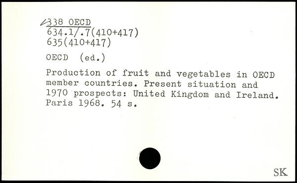 Production of fruit and vegetables in OECD member countries. Present situation and 1970 prospects: United Kingdom and Ireland.